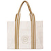 Designed for both durability and style, this tote features jacquard cotton web handles stitched from the bottom with reinforced grip stitching for added strength. The inside top zipper closure secures belongings, while the zippered pocket with metal pull and double slip pocket provide convenient organization. Built with interlock construction, a fixed board base, studs, and a one-side outside patch pocket, this tote combines functionality with a refined look—perfect for everyday use, travel, or events.