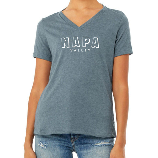 Bella + Canvas Ladies 4.2 Oz. Relaxed Hthr CVC Jersey V-Neck Poly Cotton T-Shirt Printed with a Customizable BLOCK SPORT COLLECTION Design