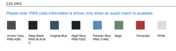 Colors Available: "Anchor Grey - Deep Black - Deep Black - Insignia Blue - Insignia Blue - Night Navy - Night Navy - Parisian Blue - Parisian Blue - Sage - Terracotta - White