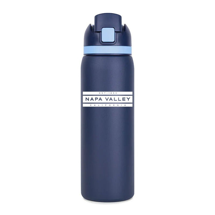 This 27 oz. stainless steel bottle combines bold style with all-day hydration. Featuring a two-toned matte finish, wide mouth opening, and a pop-up straw lid with carrying handle, it’s made for customers on the move. Customize it with your destination, logo, or slogan for a sporty, on-trend souvenir or gift shop essential. Hand washing recommended.
