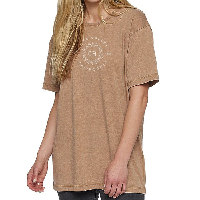 Features: Vintage Washed Fabric. Flatlock coverstitched ribbed collar. Shoulder-to-shoulder self-fabric back neck tape. Flatlock coverstitched sleeves and bottom hem. Side seam construction. EasyTear™ label.