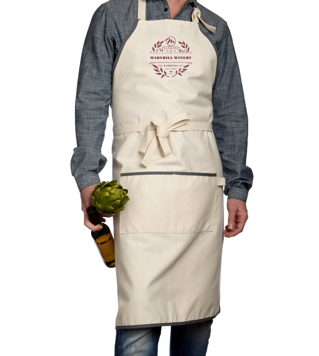 Custom Wholesale Natural Apron with Charcoal Trim Printed in VINTAGE COLLECTION Design